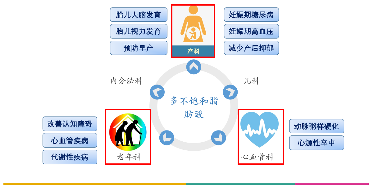 脂肪酸和維生素、氨基酸一樣,是人體最重要的營養素之一。不飽和脂肪酸具有調脂的作用,能降低 “不良”脂類物質——血膽固醇(TC)、甘油三酯(TG)和低密度脂蛋白膽固醇(LDL-C)的水平,與此同時,提升“良性”脂類物質——高密度脂蛋白膽固醇(HDL-C)的含量,令血管變得更暢通無阻、更健康及更有彈性,預防動脈粥樣硬化的發生。其中EPA和DHA不僅具有降低膽固醇、軟化血管等作用,對胎兒及嬰兒的生長發育極其重要,特別是腦部和視力的發育。